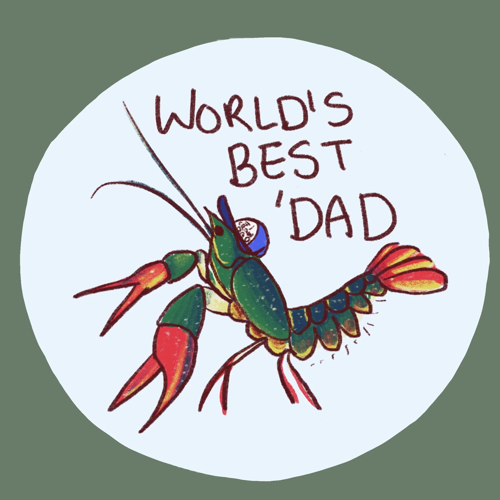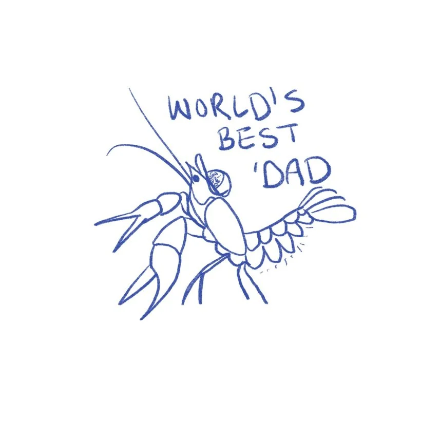This sticker was a more recent idea. A friend in the groupchat shared a targeted ad they received of a shirt that said "Craw Me Daddy" with a picture of a crawdad in the middle. I thought it was funny, made a joke about a mug that said "#1 Crawdad" on it, and then decided to actually draw it lol. I was torn between several typical father superlatives, but decided to go with "World's Best 'Dad" (although the baseball cap does say "#1 Crawdad" on it :)) Who knows, maybe I will draw more of these little guys with the other slogans.
